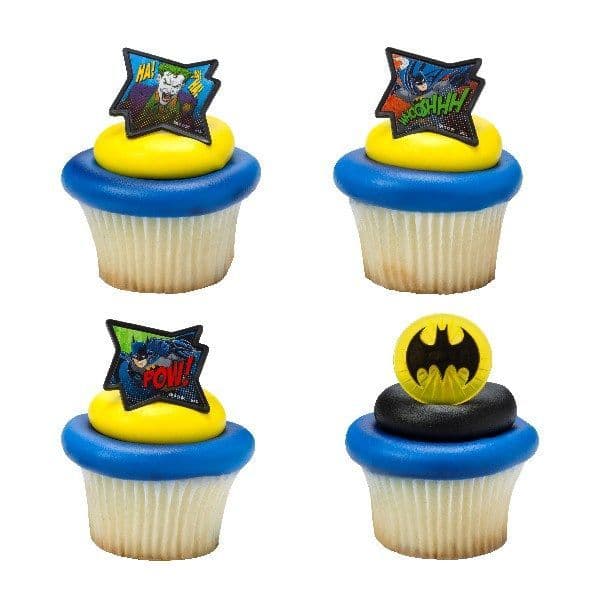 Four different rings displaying Batman, The Joker, Batman with Whooshhh & Batman with Pow.